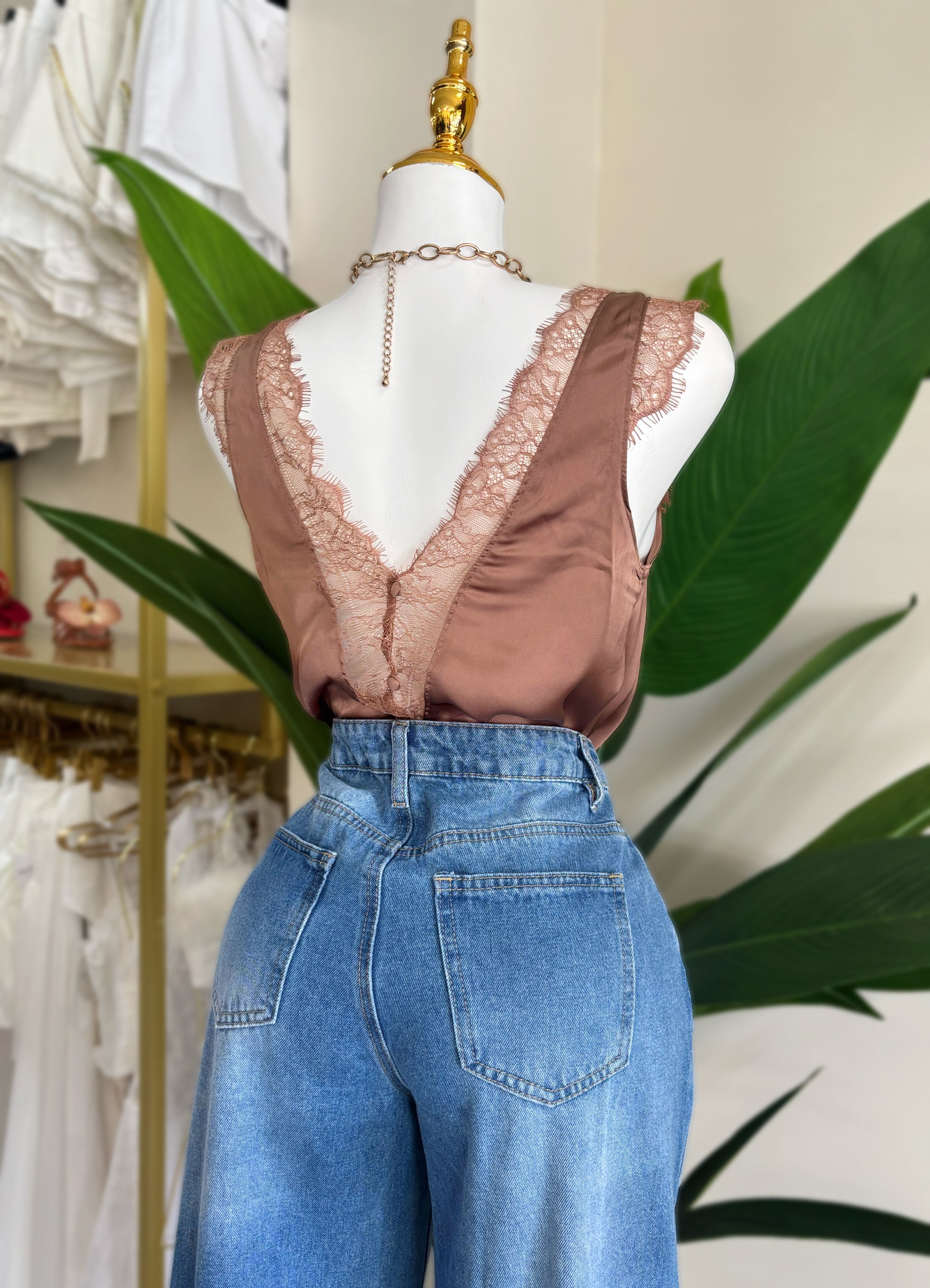 Isabella Lace Dreams Blouse (Mocha/Navy)